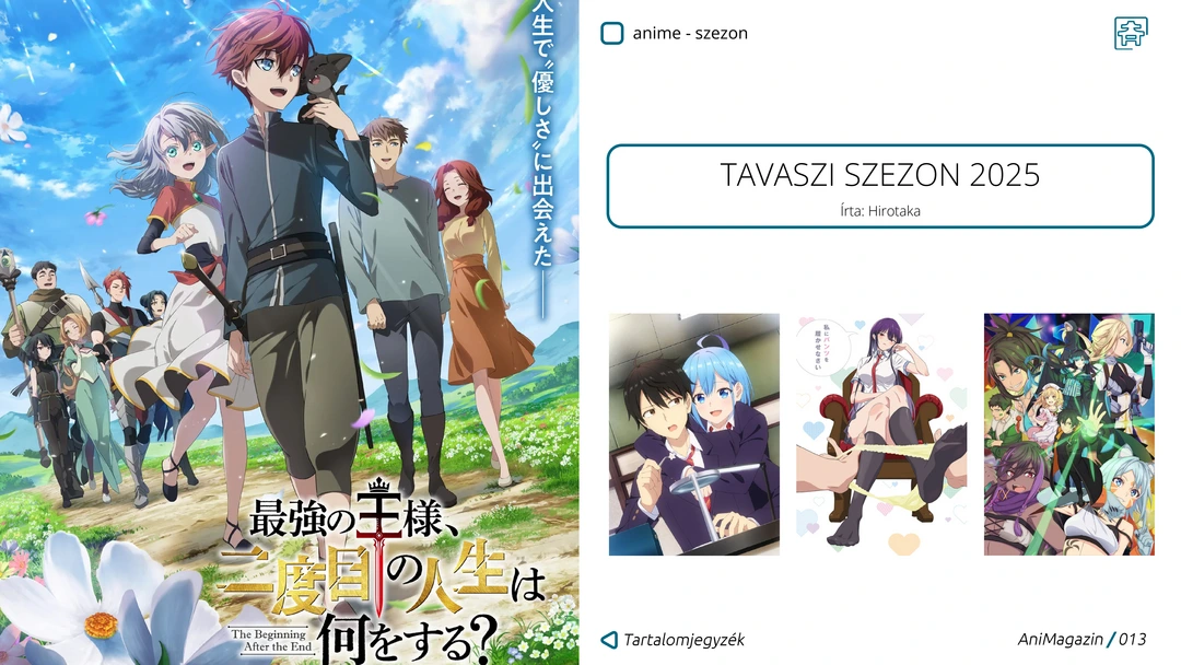 14 éves az AniMagazin, új dizájnnal! Kono Kaisha, Elf-san, Chikyuu és tavaszi szezonos anime ajánlók, Babanbabanban Vampire kritika, Sakamoto Days, Zelda és Aposimz manga, valamint Ares és Mother’s Contract Marriage manhwa ajánlók, japán filmhét és nasi történelem bemutatók, rendezvénybeszámolók és további remek cikkek az ingyenes, online AniMagazin legújabb számában!