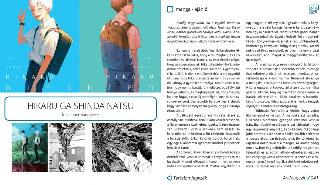 Mono, Lazarus, Kyou Kara Maou!, valamint tavaszi és nyári szezonos anime ajánlók, a hazai mangakiadások új virágkora, Hikaru ga Shinda Natsu, Reiri és Twisted Wonderland manga, valamint BJ Alex és Jinx manhwa ajánlók, Death’s Game sorozat, retrójáték- és PS5 bemutatók, interjú cosplay szervezőkkel, MondoCon beszámoló és további remek cikkek az ingyenes, online AniMagazin legújabb számában!
