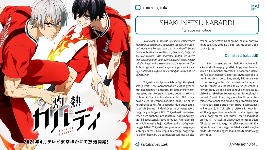 Zatsu Tabi, Shakunetsu Kabaddi, Dr. Stone, Sanrio Danshi, valamint retró és nyári szezonos anime ajánlók, Rick és Morty anime kritika, interjú a Fumax Kiadóval, Sayonara Zetsubou Sensei és Homunculus manga, valamint Another Typical Fantasy Romance manhwa ajánlók, The Haunted Palace sorozat és japán túra/hegymászás történelem bemutatók, Budapest Comic Con és MondoCon beszámolók, valamint további remek cikkek az ingyenes, online AniMagazin legújabb számában!
